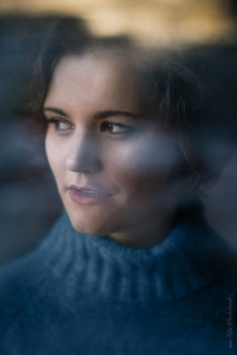 Homeshooting - stimmungsvolles PortraitBei diesem Foto kam das Fensterlicht durch einen etwa 20 cm breiten Spalt ins Zimmer. Es wurde als Streiflicht von hinten benutzt, um in der Frisur meines Models einen blauen Glow zu erzeugen.  Rechts neben dem Model lag eine schnöde Weihnachtsbaumbeleuchtung, die die Haut gelb-orange eingefärbt hat.  Natürlich kann man in der Nachbearbeitung, das Orange noch etwas reduzieren und die Hauttöne so gestalten wie es dir gefällt.