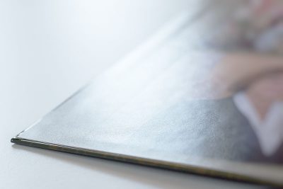 Da ich noch von der Poster Bestellung die Software auf dem Rechner hatte, legte ich mit einem Fotobuch 28 x 28 cm für ein Hochzeitsalbum los.  Also neues Projekt angelegt, Fotobuch ausgewählt und dann kam schon die erste Überraschung. Links wurden die Produktions und Lieferzeiten je nach Fotobuchtyp eingeblendet. Im nächsten Schritt wurden die Gestaltungsvarianten angeboten (Lederoptik, Seitenanzahl, usw.) Als angenehm habe ich die Möglichkeit empfunden den Produktionsbarcode auf der Rückseite auszublenden. Für Leute, die die 5 € Aufpreis nicht ausgeben wollen, hätte ich mir die Möglichkeit gewünscht, den Barcode auf der Rückseite frei zu verschieben, damit er nicht wichtige Gestaltungselemente überdeckt. Ich habe mich für Papier „MATT“, statt glänzend entschieden. Leider glänzt das Fotopapier dann immer noch ziemlich stark und ist nicht wirklich matt. Es erinnert eher an glänzendes Rasterkorn Papier… und ist sehr Widerstandsfähig gegen Fingerabdrücke. Wer also richtig mattes Fotopapier möchte, sollte sich vorher eine Probe zusenden lassen.